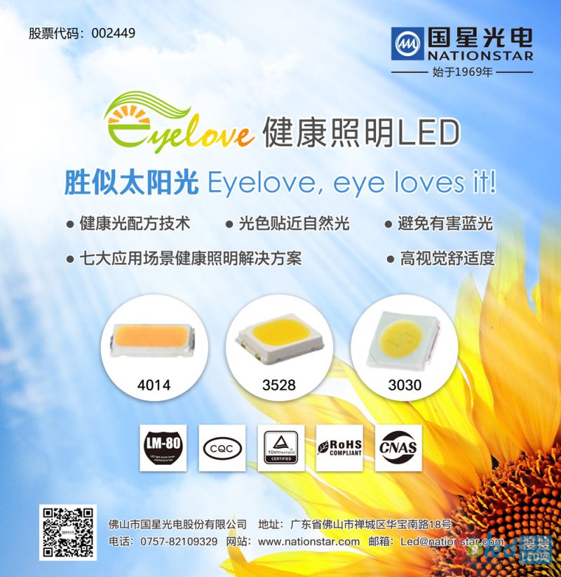 市場對Eyelove健康照明LED的高度關(guān)注凸顯了人們對健康的重視。人們對健康的追求永無止境,國星對健康照明的追求也永不止步。近日,結(jié)合新的市場需求,國星光電白光器件事業(yè)部對健康照明LED技術(shù)進一步突破和創(chuàng)新,對Eyelove品牌產(chǎn)品進行了全新升級。