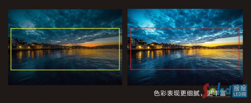 對于LED顯示屏表現(xiàn)效果而言,逼真度越高則表示該顯示屏的性能就越好,而逼真度的好壞主要由表達圖像的對比度和顏色這兩個指標(biāo)來決定的(對比度越大越好,顏色種類越多越好),高對比度更容易地顯示生動、豐富的色彩,可支持各階的顏色。