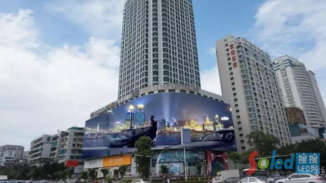 除此之外,LED幕類產(chǎn)品還擁有極強的造型能力,可以完全貼合建筑形狀,打造大型顯示景觀,提升建筑的商業(yè)價值。我們可以通過上面金華光的展會視頻,感受一下此類產(chǎn)品的造型能力。
