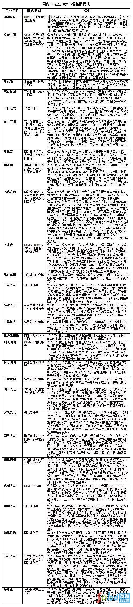 本文據(jù)此將國內(nèi)LED相關(guān)代表企業(yè)的海外市場拓展模式進(jìn)行歸納整理,期望管窺全豹,以饗讀者。