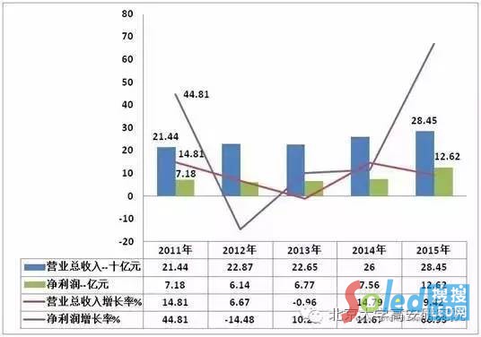 2011年~2015年華燦光電財務報表部分核心數(shù)據(jù)