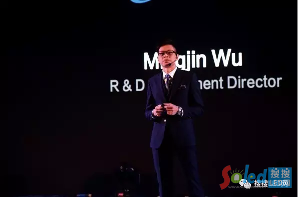 研發(fā)總監(jiān)吳明金發(fā)布行業(yè)首款智能連屏高端租賃小間距產(chǎn)品X-plus,Jobs范十足