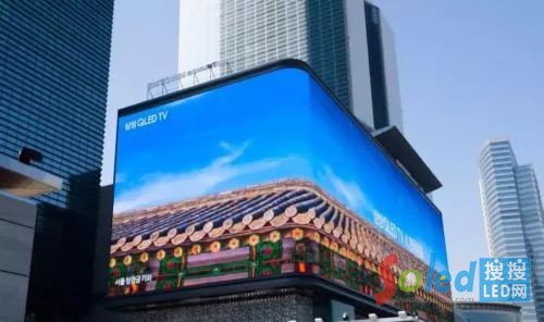 近期,三星電子在COEX的SM Town和K-Pop廣場的外墻上安裝了一塊巨型的轉角屏的“SMART LED Signage”。與以往不同的是,這個項目為了畫面顯示更流暢,在轉角部分使用了小弧形。