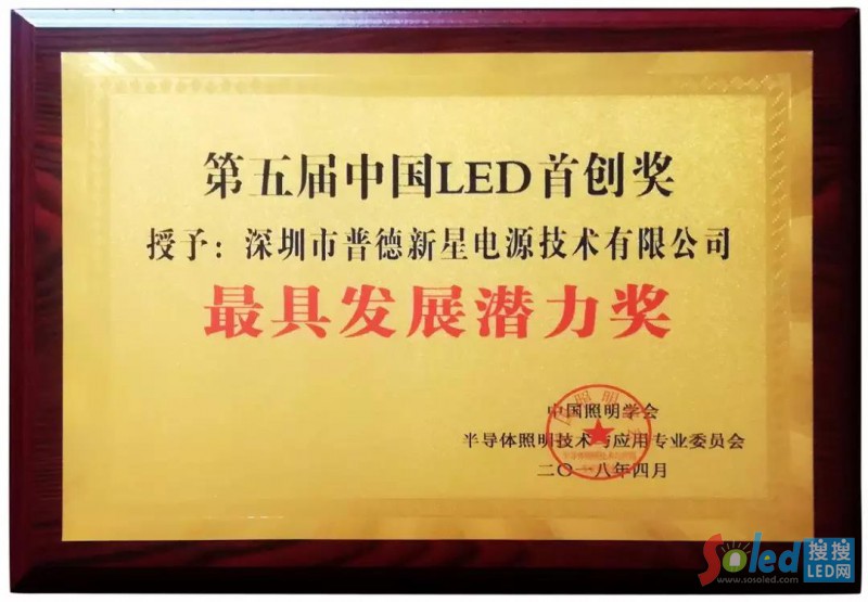 據(jù)了解,“中國LED首創(chuàng)獎”是國內(nèi)技術創(chuàng)新領域的國家級大獎,是為表彰在中國LED行業(yè)首度創(chuàng)新和自主創(chuàng)新方面做出突出貢獻的企業(yè)和個人而設立的年度獎項。此次,普德新星憑借出色的產(chǎn)品優(yōu)勢、領先的科研成果和出眾的市場表現(xiàn),獲頒2018中國LED首創(chuàng)獎-最具發(fā)展?jié)摿r值獎,是對其在LED電源領域多年耕耘,持續(xù)創(chuàng)新的肯定。