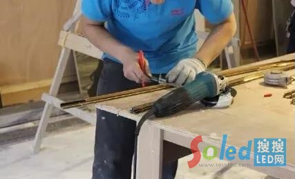 1、根據(jù)圖紙計算好全部工程的用量,對于小尺寸的屏幕,一次成型的材料必須保證凈尺寸的余量,一般控制在0.5cn以內(nèi)。如果顯示屏尺寸比較大,可以將材料長度多計算5~10cm的余量,包邊的拼接處直接交叉預(yù)埋在底部,這樣的好處是方便凈尺寸的余量精確保障。