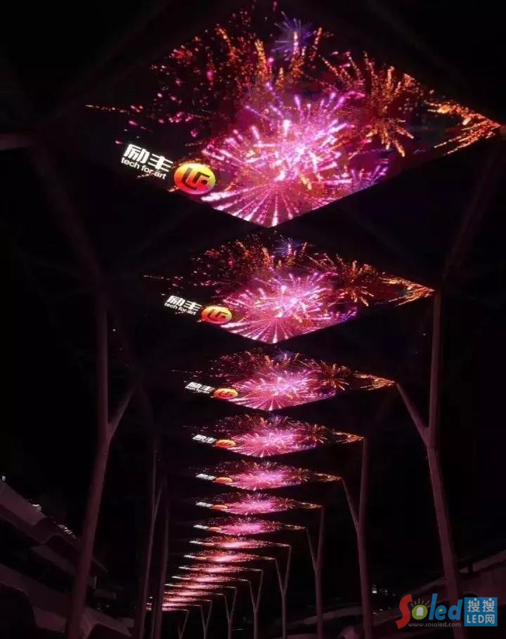 位于天文小鎮(zhèn)貴州平塘縣的天幕商業(yè)街設(shè)計長度450米,LED屏總面積超過3744個平方,單塊顯示面積達到了104平方。這是目前世界異型天幕中面積最大、長度最長的天幕街。