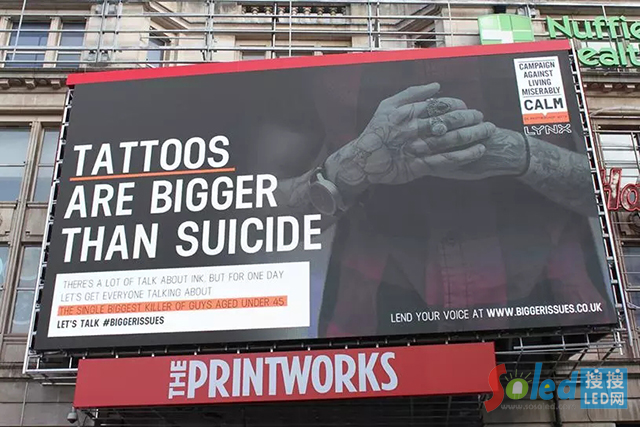 利用數(shù)字戶外靈活性的另一項成功活動是Lynx(凌仕)與男性自殺慈善機構(gòu)CALM合作開展的獲獎Bigger Issues運動。該運動試圖強調(diào)英國男性自殺問題,但事實上,這個問題并沒有像想象中那樣被頻繁地討論。Lynx通過使用實時的數(shù)據(jù)反饋,將當前最熱話題和推特的標題,與一個更大的問題——即男性自殺這一45歲以下男性最大死亡原因,并列到一起。在兩個小時的時間內(nèi),通過提供最新鮮的新聞時訊,這項活動能夠反映出英國男性的生活節(jié)奏,同時也能讓我們更清楚地看到我們更容易談論的瑣碎問題。