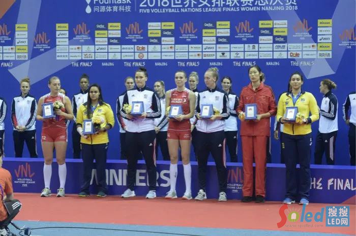 隨后,現場舉行了隆重而簡短的頒獎儀式。至此,2018世界女排聯賽總決賽圓滿收官,美國全勝折桂,黑馬土耳其拼下亞軍,中國斬獲季軍,巴西名列第4,塞爾維亞和荷蘭分獲第5和第6。