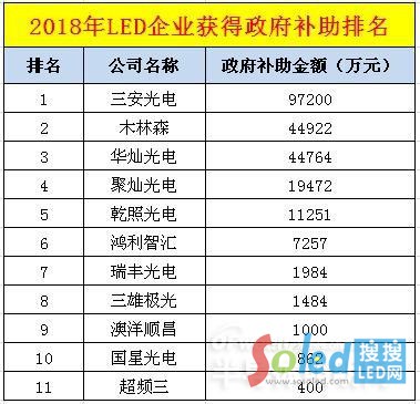 2018上半年LED行業(yè)補貼排名出爐:誰是補貼之王?