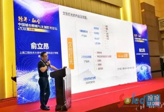 “文創(chuàng)燈光”概念首創(chuàng)者、上海工程技術(shù)大學(xué)中韓多媒體設(shè)計(jì)學(xué)院教授俞立昂先生在報(bào)告環(huán)節(jié)發(fā)表了題為【文創(chuàng)燈光的趨勢(shì)及產(chǎn)業(yè)價(jià)值分析】的演講。他認(rèn)為目前文創(chuàng)燈光具有海量的需求,能彌補(bǔ)城市及景區(qū)夜游的短板。對(duì)于何為“文創(chuàng)燈光”,他認(rèn)為是文創(chuàng)+內(nèi)容+運(yùn)營(yíng),把創(chuàng)意、設(shè)計(jì)、制造、建設(shè)和運(yùn)營(yíng)整合起來(lái),形成一個(gè)以燈光為切入口的新型商業(yè)模式。