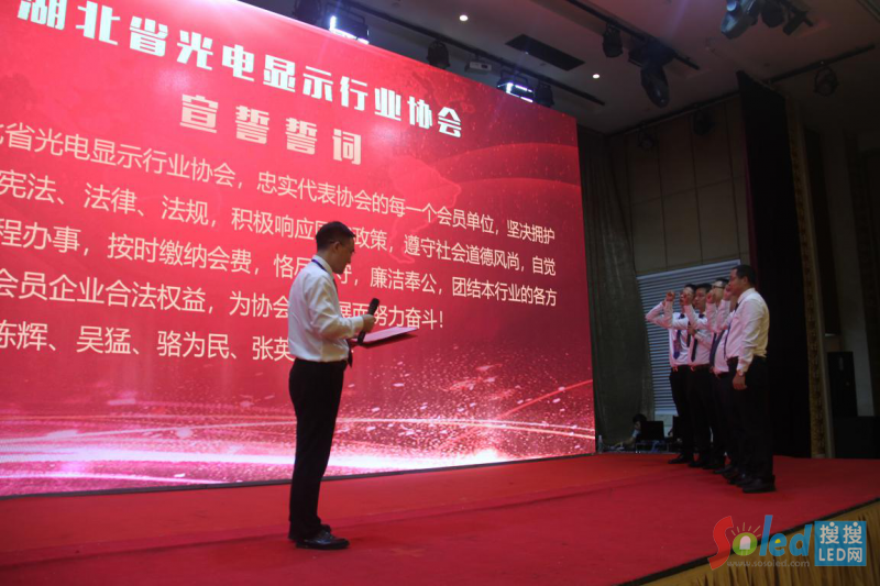 新一屆協(xié)會(huì)領(lǐng)導(dǎo)成員莊嚴(yán)宣誓,表示將竭力為協(xié)會(huì)會(huì)員企業(yè)服務(wù),共同致力于湖北光電顯示行業(yè)建設(shè),遵紀(jì)守法,努力擔(dān)當(dāng)企業(yè)與政府間的橋梁。