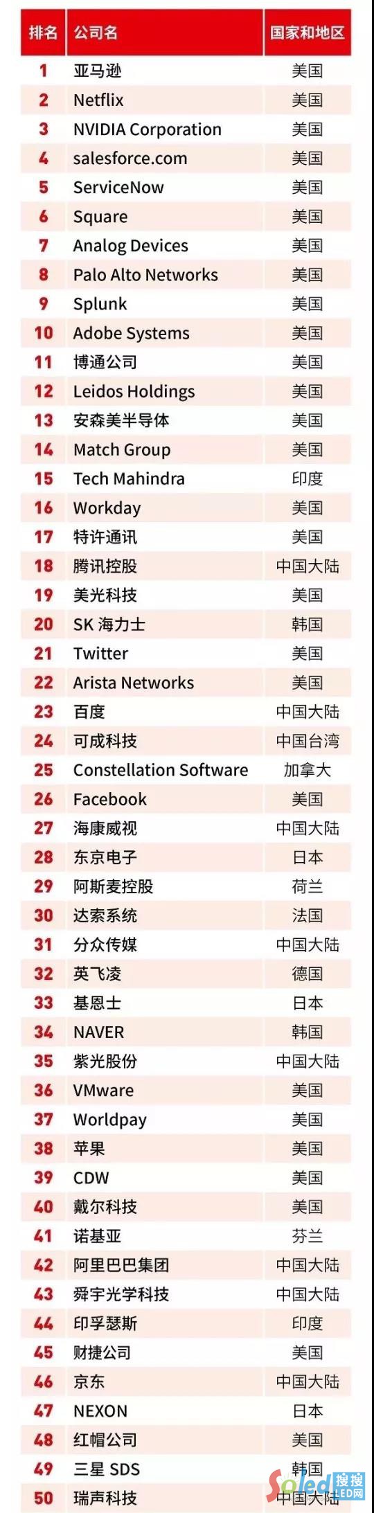 基于福布斯全球企業(yè)2000強(qiáng)榜單中的科技、媒體、數(shù)字零售和電信企業(yè)。(2000強(qiáng)榜單一年推出一次,是對全球最大型企業(yè)的排名。除此以外,還加入了5月發(fā)布2000強(qiáng)榜單以來新近上市的大型數(shù)字經(jīng)濟(jì)企業(yè)。)企業(yè)被按照各種指標(biāo)評分,包括過去一年時間的股票表現(xiàn)、銷售額、利潤和資產(chǎn)增長。