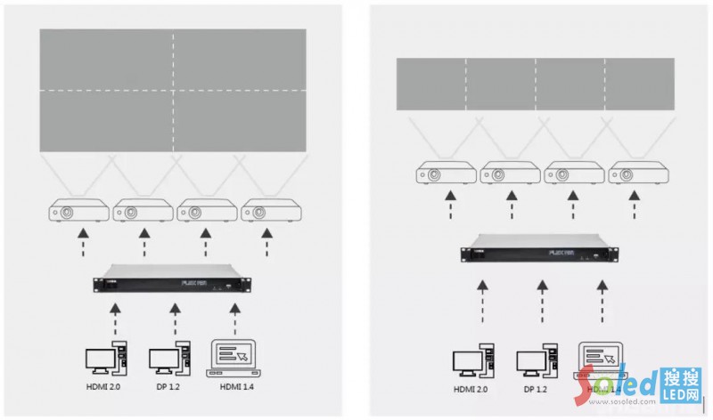 · 融合模式下每個(gè)輸出支持橫向和縱向投影融合