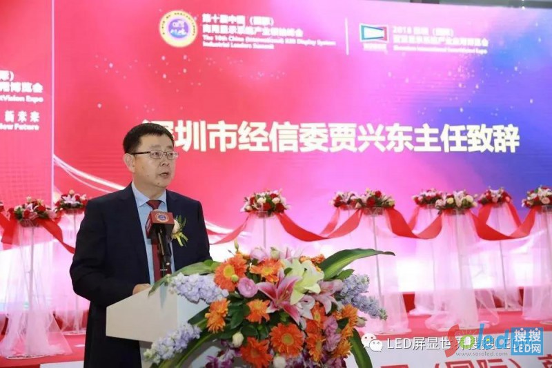 深圳市經(jīng)濟貿(mào)易和信息化委員會賈興東主任為本次大會致辭致開幕辭,深圳商顯產(chǎn)促會會長郭德軒先生致辭。