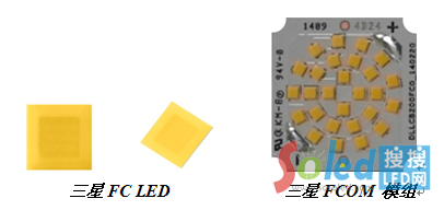 使用FC器件的FCOM(Flip-Chip On Module)模組的尺寸非常小,因而具有優(yōu)異的設(shè)計(jì)靈活性。要制造 1000 lm 或 100 lm/W 筒燈,使用三星 FCOM設(shè)計(jì)僅需一個(gè) 1.7*1.7cm 電路板面積。如此之小的外形規(guī)格使這些 FCOM 非常適合在燈泡、MR/PAR、筒燈、投光燈甚至線槽燈中使用。