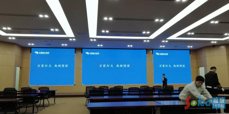 值得一提的是,聯(lián)建光電還為南方電網(wǎng)基地打造了兩套LED會議顯示大屏,一套LED顯示系統(tǒng)則安裝于三樓會議室,由三塊屏組合而成,總面積近50平米,三屏之間可聯(lián)屏互動顯示,并在多種畫面之間互相切換,為重大討論、重要決策提供直觀方便的顯示服務(wù),快速直觀的為客戶提供所需內(nèi)容。