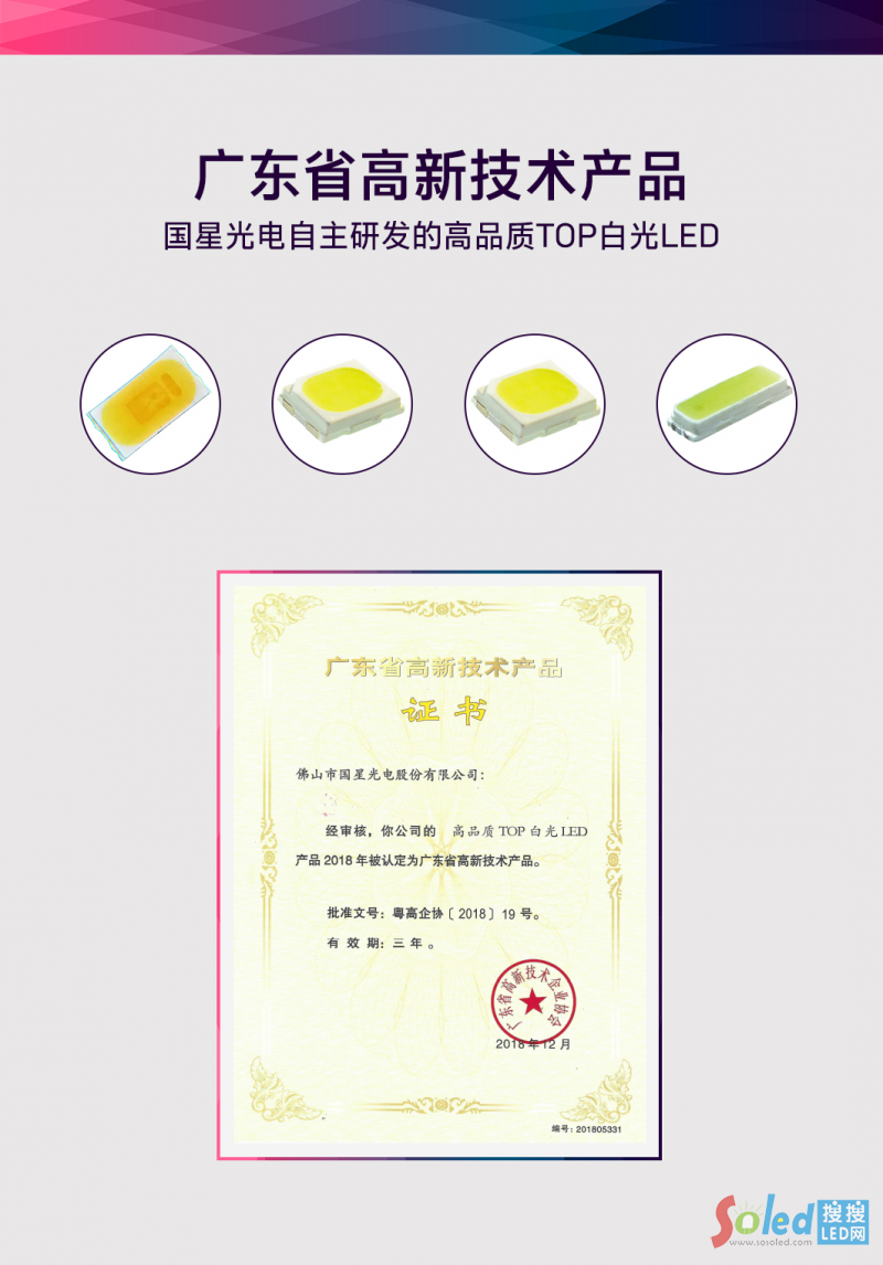 日前,由廣東省科學技術(shù)廳組織的2018年高新技術(shù)產(chǎn)品評審認定工作已經(jīng)完成,高新技術(shù)產(chǎn)品名單新鮮出爐,國星光電高品質(zhì)TOP白光LED、小間距戶內(nèi)顯示用LED、高可靠性戶外顯示用LED、大尺寸液晶背光用LED光條、小尺寸LED背光源、多功能LED顯示模塊共6款產(chǎn)品名列其中,榮獲“廣東省高新技術(shù)產(chǎn)品”認定。6款產(chǎn)品同時入選廣東省高新技術(shù)產(chǎn)品名單,代表著國星光電在深化科技創(chuàng)新,打造“技術(shù)高精尖化”的戰(zhàn)略部署上再邁新臺階。