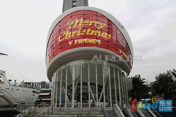 VIVO Lab概念店上層玻璃幕墻外形為三維立體弧面,每塊玻璃的尺寸和角度都不一樣,項(xiàng)目施工難度可見一斑。為了更好的融合其特殊的玻璃幕墻環(huán)境,奧蕾達(dá)工程師多次實(shí)地測(cè)量每塊玻璃的尺寸,并為VIVO項(xiàng)目量身定制了多款箱體尺寸,且其燈條角度可靈活調(diào)節(jié),僅用不同的常規(guī)透明屏箱體加上燈條調(diào)節(jié)技術(shù)就拼接出了三維立體弧面,此項(xiàng)定制技術(shù)在業(yè)內(nèi)亦屬大膽創(chuàng)新之舉。