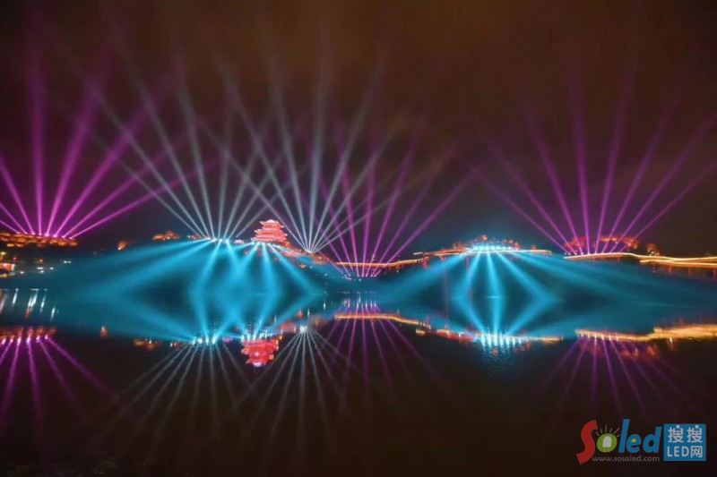 光影秀二期在一期的基礎(chǔ)上提升燈光覆蓋面積1800畝,輻射區(qū)域達(dá)200平方公里之巨。在視角主峰及兩側(cè)山脊范圍內(nèi)加裝染樹(shù)燈800套,左右兩側(cè)加裝大功率激光燈6臺(tái),漢山路6KM-6.8KM段加裝光束燈120臺(tái),漢山廣場(chǎng)東側(cè)加裝可變色投光燈150臺(tái),并對(duì)編導(dǎo)模式進(jìn)行提升。