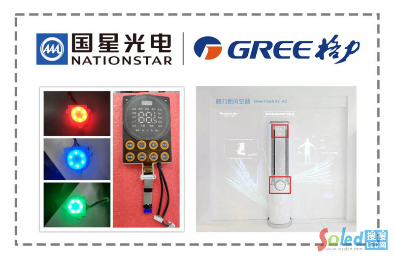 由格力自主研發(fā)的全球首臺雙向流新風空調(diào),堪稱家用空調(diào)領域最優(yōu)的新風解決方案。該空調(diào)在全球首次使用雙向流換氣技術和全熱交換技術,實現(xiàn)了新風機和空調(diào)的合體,一機解決空調(diào)房空氣質量差、換氣不徹底等問題。國星組件事業(yè)部為這款全球首臺的雙向流新風空調(diào)提供了優(yōu)質的LED顯示模塊及氛圍燈。