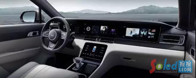 該車載顯示解決方案將數字儀表屏、中控屏、副駕娛樂屏進行貫穿式一體化設計,采用京東方自主研發(fā)的ADSDS超硬屏專利技術,實現(xiàn)了超寬視角的顯示效果,并與超窄邊框功能控制屏相呼應,整體視覺沖擊力十足。
