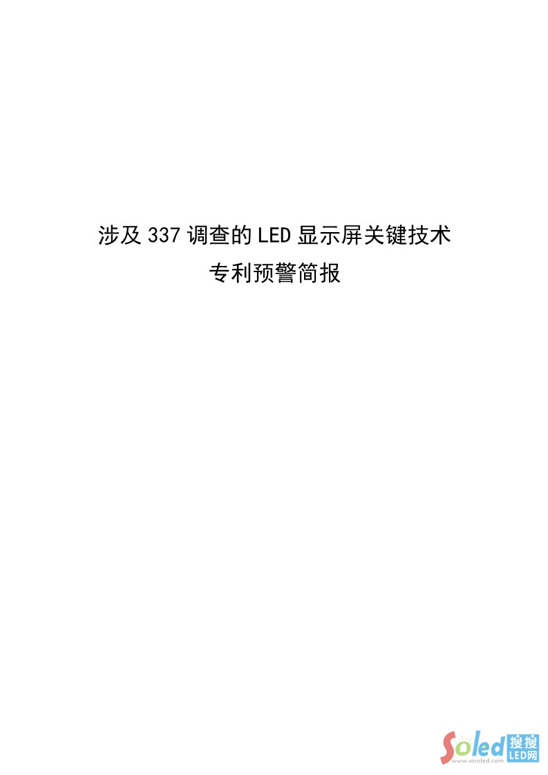 核心提示:涉及337調(diào)查的LED顯示屏關(guān)鍵技術(shù)專利預(yù)警簡(jiǎn)報(bào)