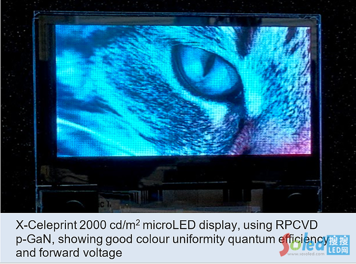 該公司表示,采用BluGlass的遠程等離子化學(xué)氣相沉積p-GaN技術(shù),X-Celeprint的主動矩陣式Micro LED顯示屏亮度優(yōu)異,包括色彩均勻度、量子效率和正向電壓等特性,可相當(dāng)于目前高性能商業(yè)應(yīng)用顯示屏2000 nits的亮度。