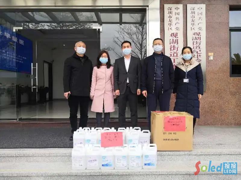 ▲工會主席劉欣欣代表公司為觀湖街道辦送去防護(hù)物資,街道領(lǐng)導(dǎo)毅恒、少明同志代表街道接受捐贈并表示感謝。