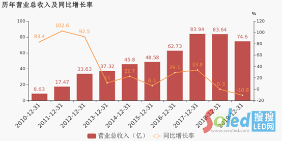 作為業(yè)界公認的LED芯片行業(yè)的龍頭企業(yè),三安光電在2018年度首次出現(xiàn)上市以來營收與凈利潤雙下滑時就指出,“受各種不確定性因素的影響,LED照明市場整體較弱,整體價格下降幅度較大,導(dǎo)致公司經(jīng)營狀況偏弱。”