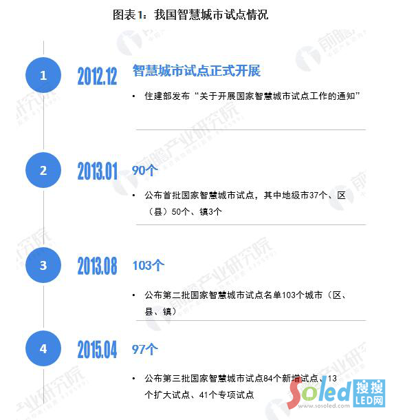 智慧燈桿身上的多種資源整合利用,豐富了人們對未來智慧城市的想象,構(gòu)建新型智慧城市和社區(qū)需要以數(shù)據(jù)為基礎(chǔ),城市數(shù)據(jù)的采集依賴于建立“全域感知”體系,即將信息感知設(shè)備合理、泛在布局在城市各處,智慧燈桿分布廣、位置優(yōu)良,是“全域感知”設(shè)備的優(yōu)良載體。2012年12月,住建部發(fā)布“關(guān)于開展國家智慧城市試點工作的通知”;2014年8月27日,國家發(fā)改委聯(lián)合七部委7發(fā)布《關(guān)于促進(jìn)智慧城市健康發(fā)展的指導(dǎo)意見》開始,為中國的智慧城市建設(shè)確立了基本原則,包括應(yīng)用智慧技術(shù)推動綜合公共服務(wù),推動數(shù)字平臺的數(shù)據(jù)收集與分享等。從國家開始推進(jìn)智慧城市建設(shè)以來,住建部發(fā)布三批智慧城市試點名單。其中第 一批在2013年1月發(fā)布,共包含90個城市(區(qū)),其中地級市37個,區(qū)50個,鎮(zhèn)3個;第二批于2013年8月公布,共包含103個試點;2014年公布第三批試點,共計93個,其中84個新增試點,13個擴(kuò)建試點。截至目前,住建部公布的智慧城市試點數(shù)量已經(jīng)達(dá)到290個。