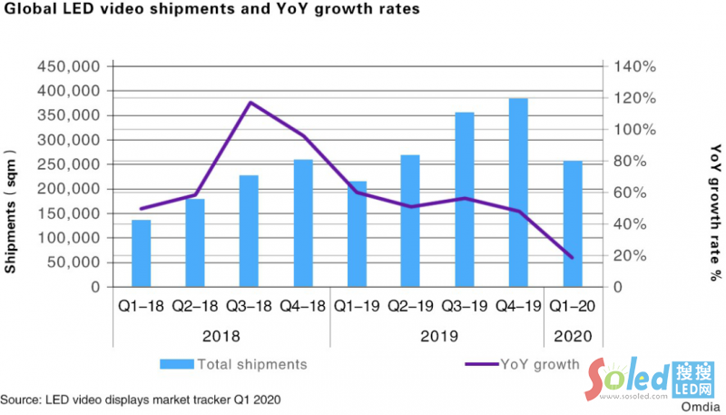 據(jù)Omdia數(shù)據(jù)統(tǒng)計(jì)顯示,2020年一季度,全球LED顯示屏市場(chǎng)繼續(xù)以逐年增長(zhǎng)的速度增長(zhǎng),出貨量為255,648平方米,比2019年同期的215,148平方米增長(zhǎng)了18.8%。從一季度業(yè)內(nèi)幾大上市公司公布的業(yè)績(jī)報(bào)告看,疫情對(duì)一季度的影響并沒(méi)有想象中的大。但是,二季度,全球疫情防控形勢(shì)依舊不容樂(lè)觀(guān),不少?lài)?guó)家仍處于比較嚴(yán)格的管控之中,對(duì)于進(jìn)出口都有比較嚴(yán)格的把控,再加上中國(guó)之外的大多數(shù)國(guó)家可能還沒(méi)有完全的復(fù)工復(fù)產(chǎn),產(chǎn)能也就跟不上,二季度貿(mào)易季度的貿(mào)易降幅將會(huì)擴(kuò)大也在預(yù)料之中。