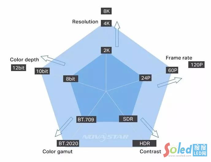 作為圖像處理行業(yè)的領(lǐng)導(dǎo)者,SONY公布了超高清畫質(zhì)的標(biāo)準(zhǔn),包含了5個維度的提升:分辨率、色深、色域、對比度與幀率。