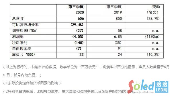 歐司朗集團(持續(xù)經(jīng)營)第三季度關(guān)鍵財務(wù)數(shù)據(jù)