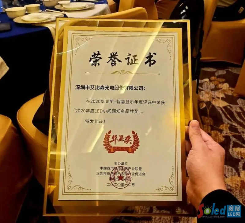 -2020華顯獎(jiǎng)“年度LED小間距知名品牌獎(jiǎng)”-