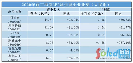 2020年第三季度LED顯示屏企業(yè)業(yè)績