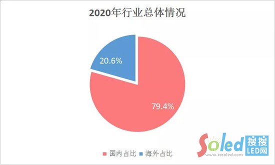 由于無法“走出去”,布局海外市場的企業(yè)不得不將重心轉(zhuǎn)向國內(nèi)市場,拓展國內(nèi)渠道。2020年LED顯示屏行業(yè)國內(nèi)市場占比約79.4%,比2019年增加17.5%。