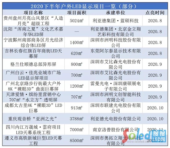 2020下半年戶外LED顯示項目一覽(部分)