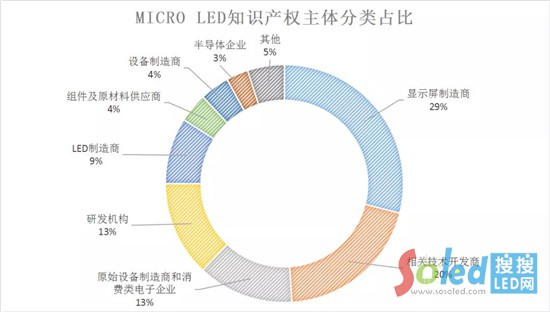 2020年Micro LED知識產(chǎn)權(quán)主體分類占比