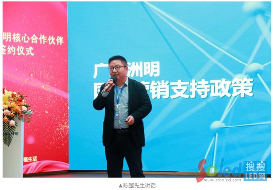 廣東洲明總經(jīng)理艾志華、廣東洲明國內營銷部總經(jīng)理吳瑞強、廣東洲明GTM總監(jiān)陳罡出席會議并發(fā)表講話。