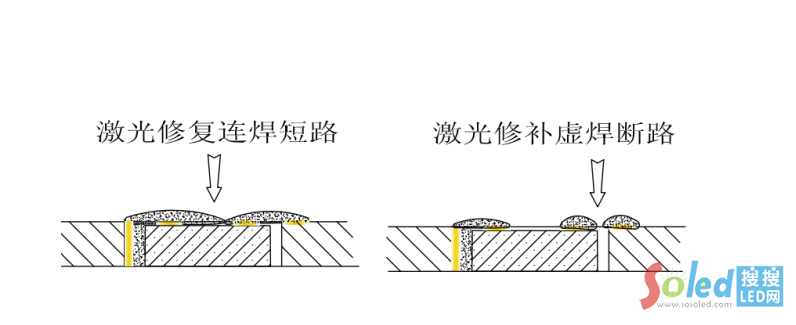 采用激光修復連焊短路和虛焊斷路,以及修補缺陷的晶片,簡單高效,所要的技術設備都是現(xiàn)有。采用圖像識別技術檢測錫焊點,確保每個焊點品質可靠,良品率得到保障。