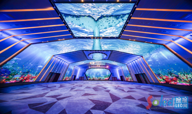宴會廳前廳: 配備了房頂、墻壁和地面融合組成的巨型交互式屏幕 。使用利亞德VED系列P2.5LED小間距屏幕,不僅能完美地呈現(xiàn)各種特效,還可結(jié)合虛擬現(xiàn)實技術(shù)來使用,例如實時捕捉現(xiàn)場人們的動作、位置、聲音,從而展示不同的信息和效果;亦真亦幻的多維立體效果,耳聽其聲,目觀其形,甚至還可以手觸其身。這些交互式屏幕也為活動的暖場、接待提供了絢爛的場地。