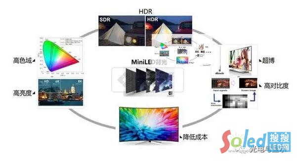 目前,電視市場主要有兩種面板,LCD和OLED。OLED的優(yōu)點(diǎn)是讓畫面顯得更純凈,不過也有成本高、亮度有限、壽命較短等缺陷。而Mini LED,恰好兼顧了LCD和OLED的優(yōu)點(diǎn),Mini LED技術(shù)指標(biāo)站在顯示行業(yè)前列,且同性能下成本有望走低,和OLED拉出明顯價(jià)格差,因此被視作顯示產(chǎn)業(yè)的未來,成為電視行業(yè)重點(diǎn)發(fā)力的核心技術(shù)。