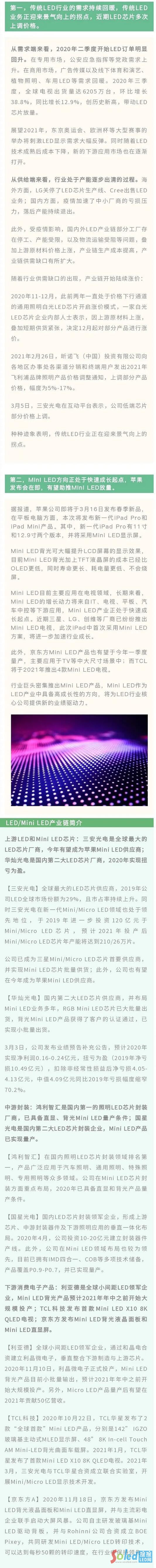LED行業(yè)需求回暖、Mini LED快速成長(zhǎng),LED產(chǎn)業(yè)正迎來(lái)雙輪驅(qū)動(dòng)