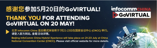 感謝您參與5月20日的InfoComm China GoVIRTUAL線上活動!在過去數(shù)月我們已成功舉辦三場GoVIRTUAL線上活動,向業(yè)界介紹2021年北京InfoComm China展會的參展商,并呈獻超過100場現(xiàn)場演示和研討會,希望您通過線上活動和展商建立聯(lián)系,從而推進7月線下實體展中的合作!為了幫助我們不斷完善和為您提供一個更好GoVIRTUAL體驗,歡迎您填寫問卷,提供意見和反饋: