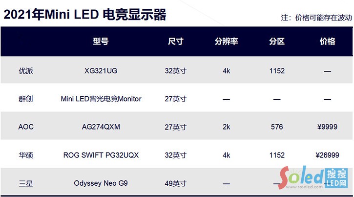 除了TCL和三星,今年還有華碩、AOC、優(yōu)派等企業(yè)發(fā)布Mini LED電競(jìng)顯示器。
