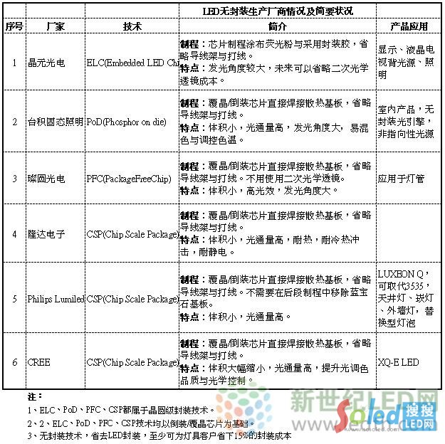 LED不斷低價化的趨勢也讓廠商不斷思量降低生產(chǎn)成本方式,無封裝因可省去部分封裝環(huán)節(jié),大幅降低成本而被叫好。包括臺灣LED芯片廠晶電、璨圓、一條龍廠臺積固態(tài)照明、隆達、國際大廠Toshiba、CREE、PhilipsLumileds都積極投入無封裝產(chǎn)品的研發(fā)與生產(chǎn)。