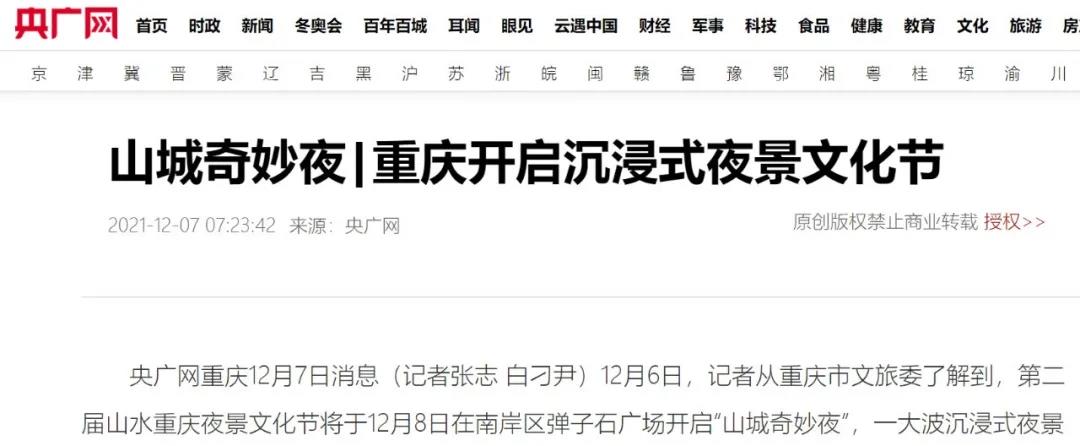 人民網(wǎng)、央廣網(wǎng)等權(quán)威媒體對(duì)活動(dòng)進(jìn)行專題報(bào)道,并對(duì)重慶燈光藝術(shù)季以光顯技術(shù)為手段,促消費(fèi)、擴(kuò)內(nèi)需,培育夜經(jīng)濟(jì)產(chǎn)業(yè)體系的創(chuàng)舉,給予肯定。