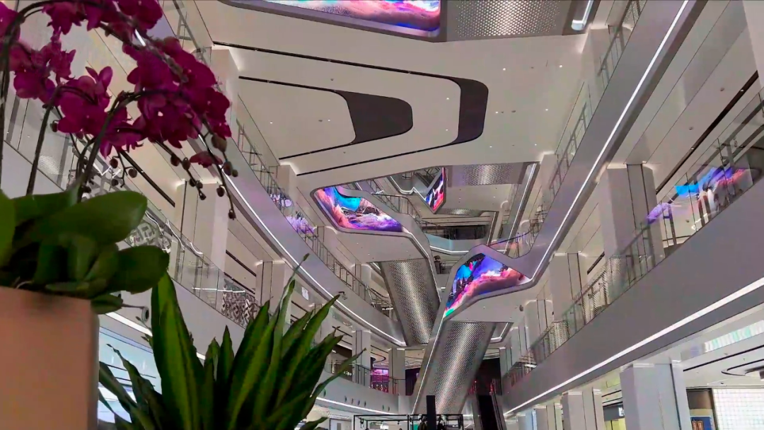 改造后的中信泰富廣場外觀建造上采用形制各異的玻璃幕墻和新型復(fù)合材料,在項(xiàng)目東、西、中打造了通透的玻璃空間,結(jié)合錯(cuò)落有致的商鋪陽臺(tái)與下沉庭院,應(yīng)用雷曼康碩展的LED系統(tǒng)解決方案,將原本龐大而單一的體量打散,消解成一個(gè)個(gè)不同的“像素盒子”,重構(gòu)出一幅通透、多元、互動(dòng)的城市圖景,搭建出美輪美奐的空間形象。
