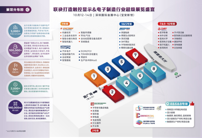 深圳國際全觸與顯示展(C-TOUCH & DISPLAY SHENZHEN)作為智慧觸控和新型顯示行業(yè)的風(fēng)向標(biāo)展會(huì),砥礪十五載,重裝出發(fā)。本屆展會(huì)將聯(lián)合中國汽車工業(yè)技術(shù)展、深圳商用顯示技術(shù)展以及NEPCON ASIA亞洲電子生產(chǎn)設(shè)備暨微電子工業(yè)展等同期舉辦。超10萬平方米的超級展覽盛宴,規(guī)?涨,預(yù)計(jì)吸引100,000名行業(yè)優(yōu)質(zhì)買家到場。