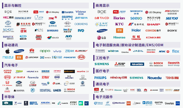絲印耗材、油墨、高功能薄膜、鍍膜材料、蝕刻劑/光阻劑、導(dǎo)電薄膜、基板玻璃、車載玻璃、液晶材料、OLED發(fā)光材料、偏光片、彩色濾光片、OCA光學(xué)薄膜、背光源組件、驅(qū)動(dòng)IC等